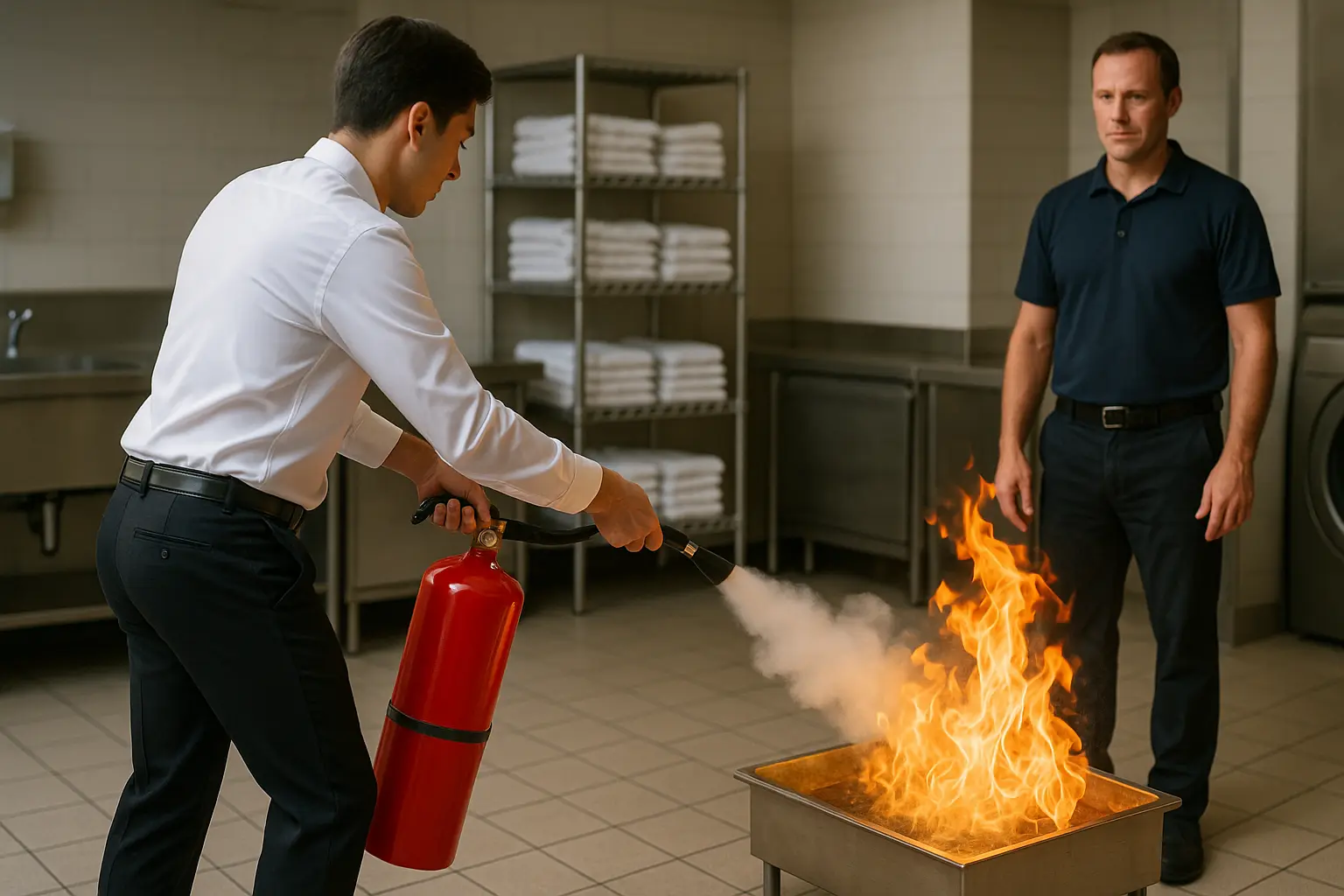 L’essentiel à retenir : pour une sécurité optimale en hôtel, une formation extincteur sur-mesure avec scénarios réalistes adaptés aux risques spécifiques (cuisine, électricité, textiles) est